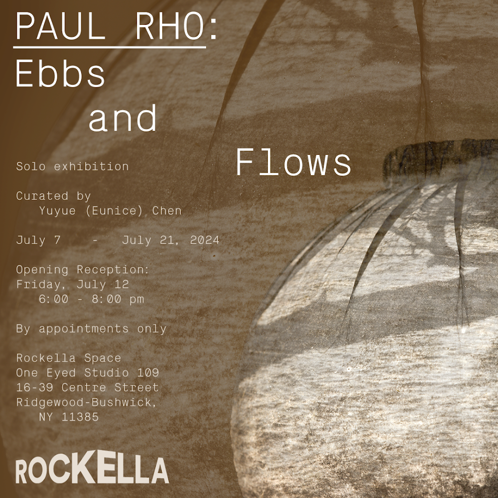 Rockella Space is pleased to present Ebbs and Flows, which marks Paul Rho’s debut solo exhibition in New York. Showcasing his multimedia work spanning across photography, ceramic, installation, and sound, Eunice Chen, the curator of the exhibition, will organize a space where people can experience the changes of time and space, nature, and the cosmos and engage with local communities.